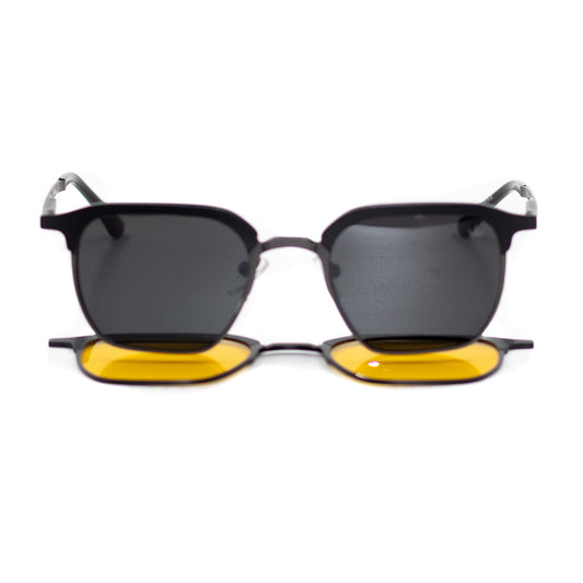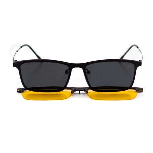 La solución dos en uno: lentes graduados con clip magnético para sol. Versatilidad total sin cargar múltiples gafas.