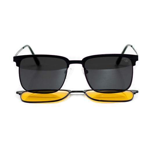La solución dos en uno: lentes graduados con clip magnético para sol. Versatilidad total sin cargar múltiples gafas.
